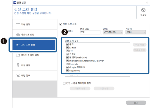 2간단 스캔 설정를 클릭한 후 대상 표시 설정에서 표시하지 않으려는 대상은 제거합니다.