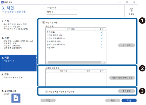 저장 설정이 완료되면 다음 또는 3. 색인 탭에서 색인 파일을 설정할 수 있습니다.
