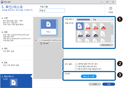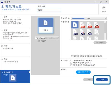 현재 설정된 작업을 사용하여 테스트 스캔을 수행하십시오.