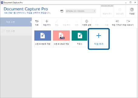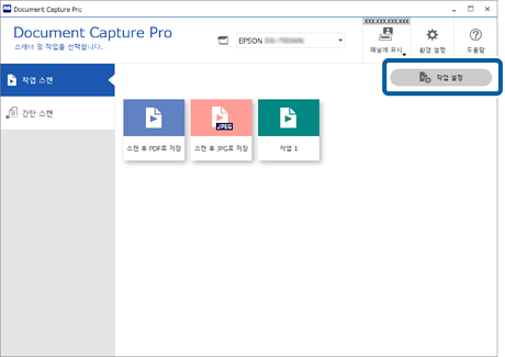 1작업 스캔 화면에서 작업 설정을 클릭하십시오.