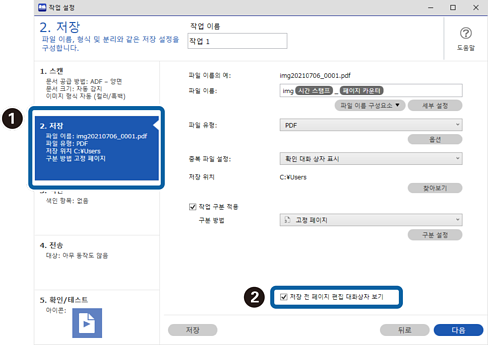 1작업 설정(Document Capture Pro 상단 화면에서)를 클릭합니다.