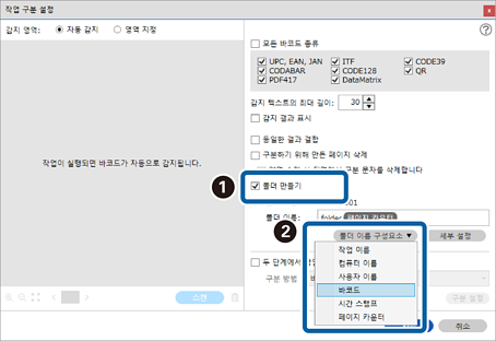 이 섹션에서는 "바코드로 구분하고 바코드 텍스트 정보를 폴더 이름으로 저장하기"에 대한 작업 설정을 설명합니다.