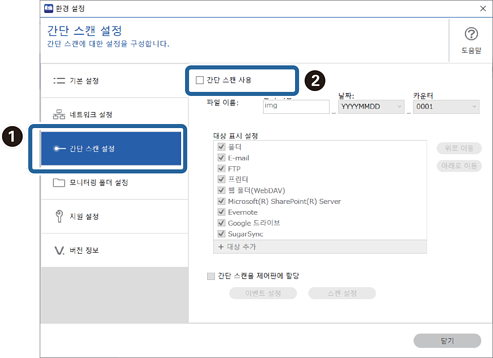 2간단 스캔 설정 탭을 클릭한 후에 간단 스캔 사용을 해제합니다.