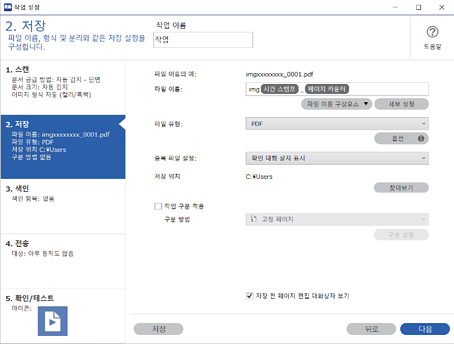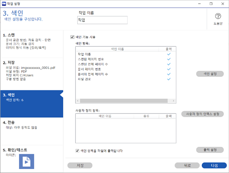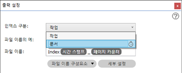 예: 작업 스캔 3. 색인 화면 - 출력 설정 화면 - 인덱스 구분