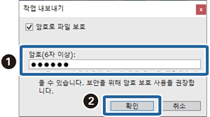 3작업 내보내기 화면에서 암호를 설정하고 확인를 클릭합니다.