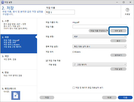 4파일 이름에 사용되는 바코드/OCR 인식 결과 화면이 표시되도록 설정을 구성합니다. 세부 설정을 클릭합니다.