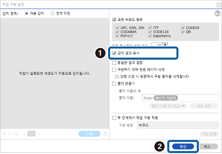 8작업 구분 설정 화면에서 감지 결과 표시를 선택한 다음 확인을 클릭합니다.