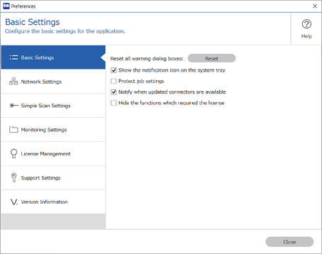 Para exibir a janela das Preferências, clique em Preferências na janela superior do Document Capture Pro.