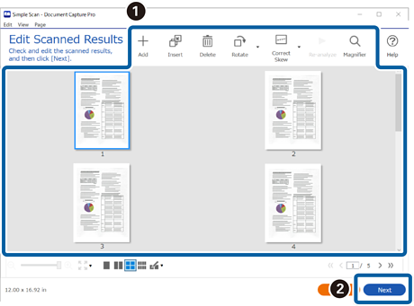 3Verifique os resultados de digitalização na janela Editar resultados digitalizados, realize edições como necessário, e a seguir clique em Seguinte.