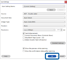5Clique em OK na janela Definições de Digitalização.