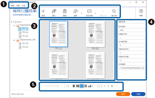 您可以矫正图像方向、添加/插入/重新排列页面顺序,以及检查/矫正要创建的文件结构。
