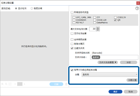 5选择 在两个阶段应用任务分隔,将 分隔 设置为 条形码,然后单击 分隔设置。