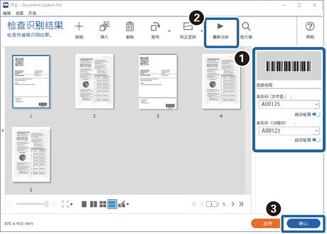 如果您要检查条形码是否已正确识别,选择 显示检测结果。您可以在屏幕上检查扫描后显示的识别区域和文本。也可以重新指定要识别的区域,或校正文本。