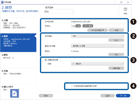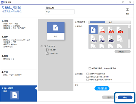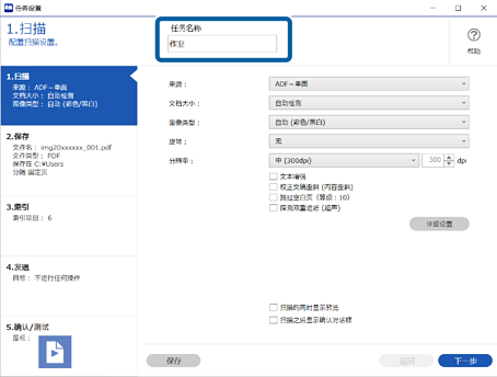 完成扫描设置后,单击 下一步 或 2.保存 选项卡。