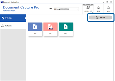 如果想要从扫描仪的按键运行已保存的任务,单击 事件设置 并将任务分配至扫描仪的按键。