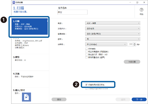 3单击 1.扫描 选项卡,然后选择 扫描的同时显示预览。