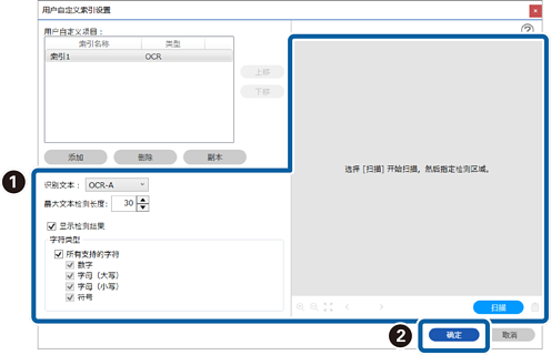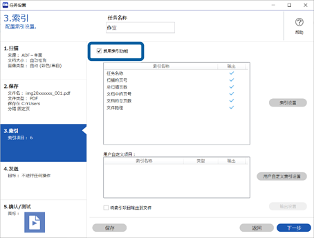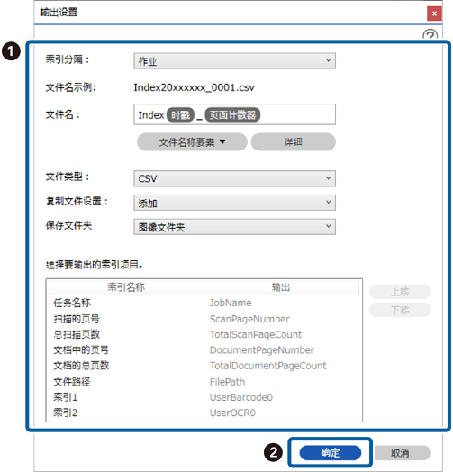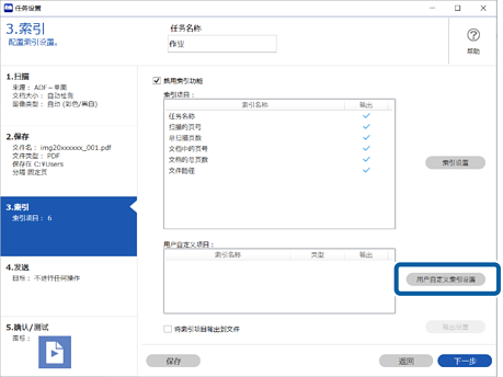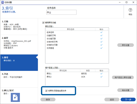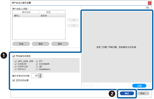 您可以根据条形码或 OCR 设置用户定义索引,并将其作为索引数据输出。