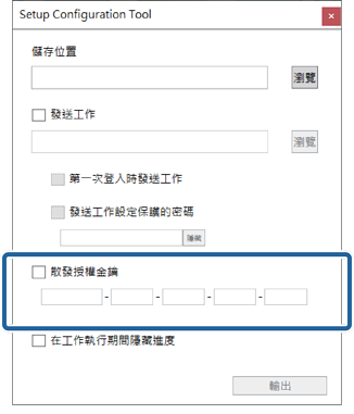 本節說明如何使用設定配置工具建立包含許可密鑰的設定配置檔案 (Setup.ini),以及如何建立可同時安裝 Document Capture Pro 和分配許可密鑰的安裝工具。
