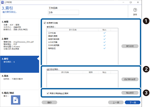 6您可以在 [3.索引] 索引標籤上進行索引檔案設定。