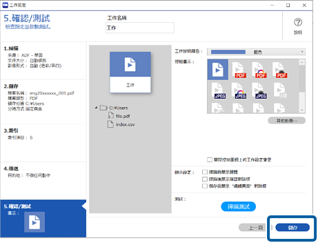 完成傳送設定後,按下 [下一頁] 或 [5.確認/測試] 索引標籤。