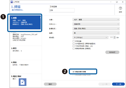 3按下 [1.掃描] 索引標籤,然後選取 [掃描時顯示預覽]。