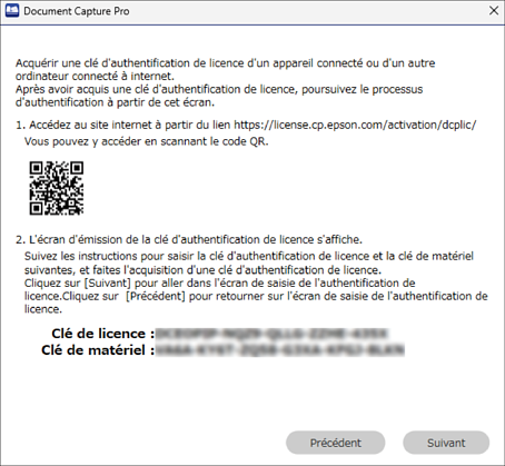11Saisissez la clé d’activation affichée à l’étape 9, puis cliquez sur Suivant.