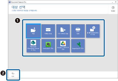 이 화면에서 스캔된 이미지의 저장할 대상을 선택할 수 있습니다.