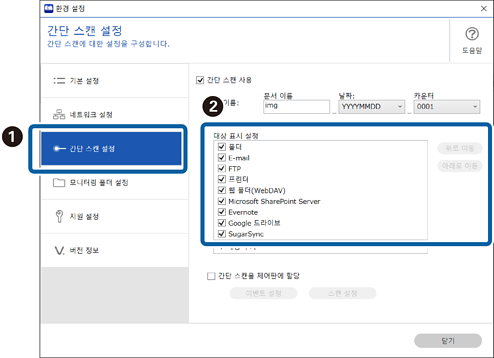 2간단 스캔 설정를 클릭한 후 대상 표시 설정에서 표시하지 않으려는 대상은 제거합니다.