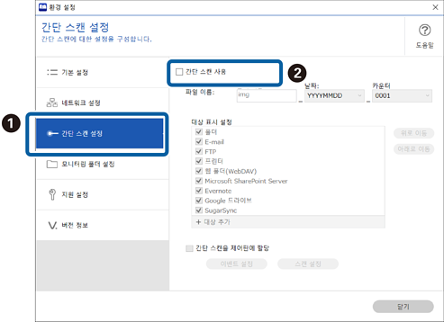 2간단 스캔 설정 탭을 클릭한 후에 간단 스캔 사용을 해제합니다.