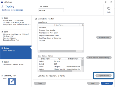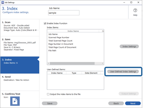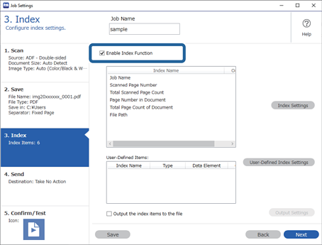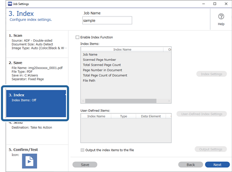 1Ta fram skärmen Jobbinställningar och klicka sedan på fliken 3. Index.