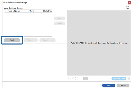 4Klicka på Lägg till på skärmen Användardefinierade indexinställningar.