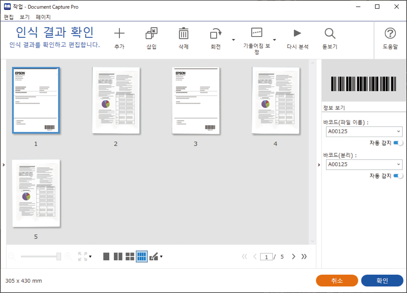 스캔된 결과 편집 화면에서 다음을 확인하고 편집할 수 있습니다.