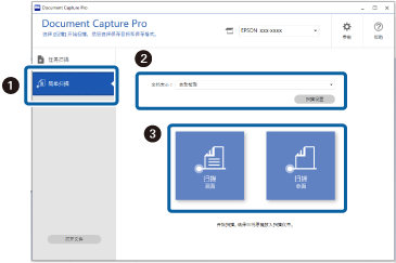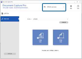 从 Document Capture Pro 顶部屏幕中选择要使用的扫描仪。启动该软件时,它会自动连接到上次使用的扫描仪。