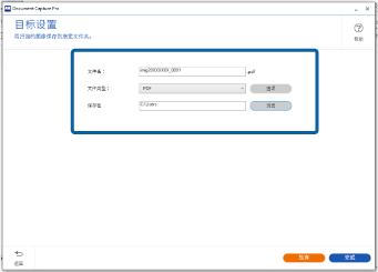 在目标设置屏幕上,选择要保存的文件和保存格式。还可以根据目标进行更详细的设置。