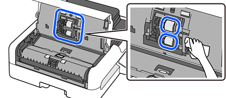 清潔 ADF 時,請小心不要讓手或頭髮卡入齒棍或輥輪中。否則可能導致受傷。