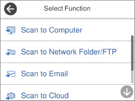 عند قيامك باختيار مسح ضوئي إلى كمبيوتر، اختر جهاز الكمبيوتر الذي تم تثبيت Document Capture Pro عليه، ثم اختر مهمة مسجّلة. هذا متوفر فقط لأجهزة الكمبيوتر المتصلة على الشبكة.