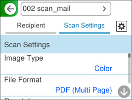 گزینههای منو برای اسکن و ارسال به ایمیل