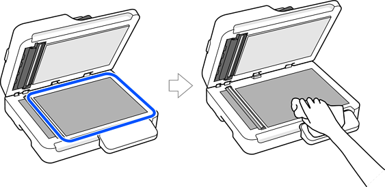 همه لکهای روی شیشه اسکنر را با دستمال پاک کنید.