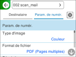 Sélectionnez Param. de numér., vérifiez des paramètres tels que le format d’enregistrement et modifiez-les si nécessaire.