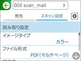 [スキャン設定]を選択して保存形式などの設定を確認し、必要に応じて変更します。