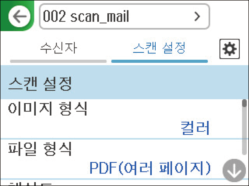 를 선택하고, 스캐너 설정을 확인한 다음 필요한 경우 변경합니다.