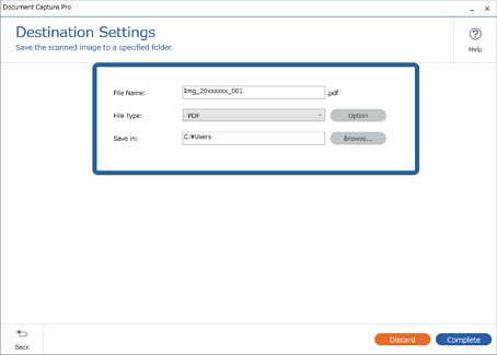 Tetapkan fail yang ingin anda simpan dan simpan format pada skrin Tetapan Destinasi. Anda juga boleh membuat tetapan yang lebih terperinci mengikut destinasi.