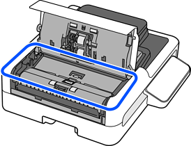 Jika ralat terus berlaku selepas mengeluarkan dokumen yang tersekat, buka penutup ADF dan periksa sekali lagi untuk memastikan tiada cebisan kertas yang tertinggal.