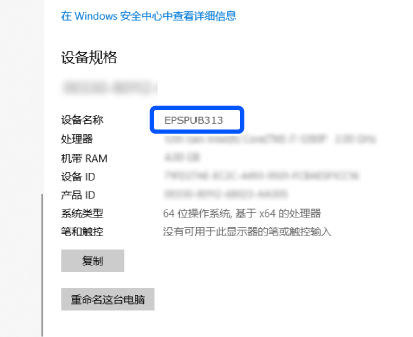 确保设备名称(计算机名称)不包含双字节字符。单击 Windows 开始按钮,然后选择