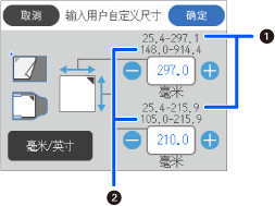 可定义的原稿尺寸根据放置原稿使用的文档来源而异。根据屏幕上显示的数字输入值。