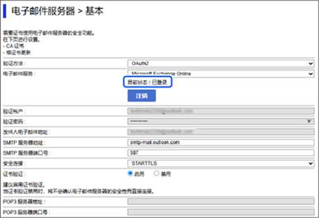 如果目前状态为已登录,登录信息可能尚未保存到扫描仪。单击确定以将设置信息发送到扫描仪。