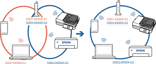 เมื่อคุณใช้เราเตอร์ไร้สายหลายตัวพร้อมกัน หรือเราเตอร์ไร้สายมี SSID หลายค่า และอุปกรณ์เชื่อมต่ออยู่กับหลาย SSID คุณจะไม่สามารถเชื่อมต่อกับเราเตอร์ไร้สาย