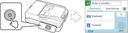 คุณสามารถเปลี่ยนหน้าจอเริ่มต้นที่จะแสดงเมื่อเปิดสแกนเนอร์ได้ เลือกเมนู การตั้งค่า บนหน้าจอหลัก แล้วทำการตั้งค่าใน หน้าจอเริ่มทำงาน