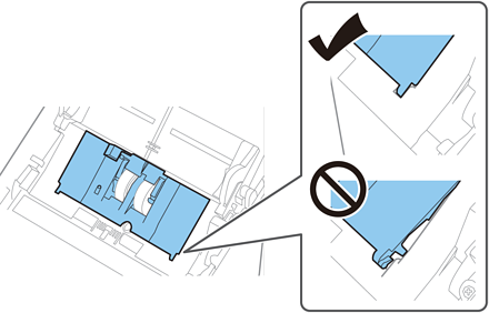Put the edge of the cover of the pickup roller into the groove and slide it. Close the cover firmly.