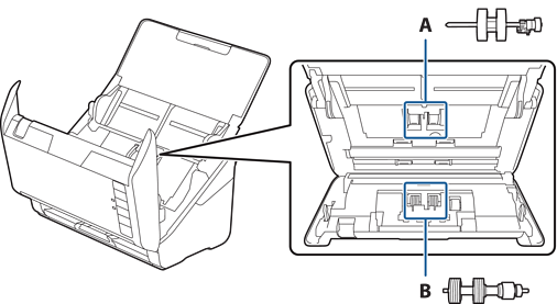 A: pickup roller, B: separation roller